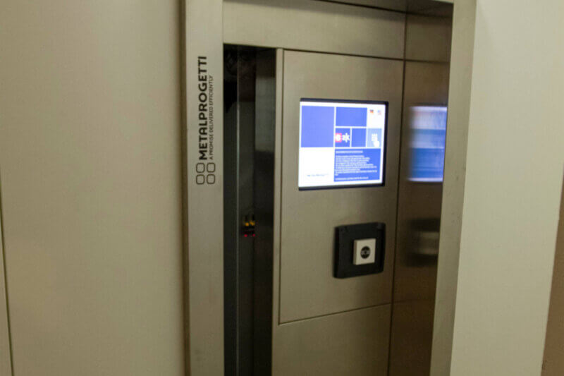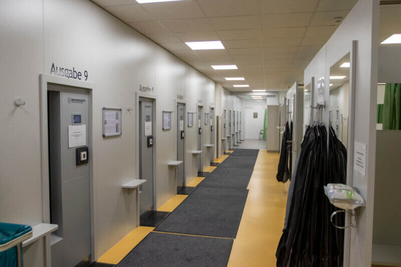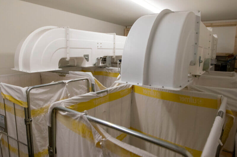 Getragene Wäsche wird in dem Modul der Wäscherückgabe abgegeben und automatisch vorsortiert. Dies funktioniert über das pneumatische Sortiersystem, das die abgegebene Wäsche in bis zu drei Kategorien trennen kann.