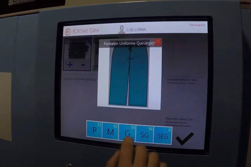 Am Ausgabeschalter wird über ein individuelles Eingabemodul (Touchscreen) saubere und sofort tragbare Berufsbekleidung nach Wunschgröße und Anzahl, geordert und in sekundenschnelle ausgeliefert.